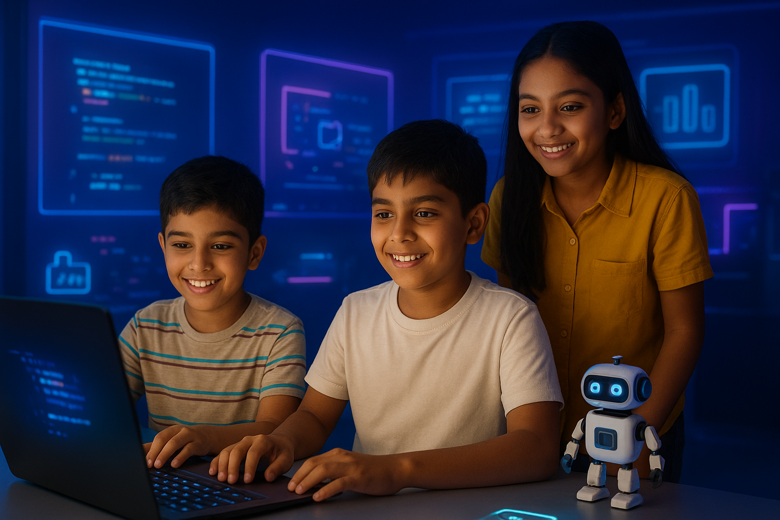 Coding and creativity go hand in hand here. Kids learn through games, stories, and activities — making education a joyful adventure!